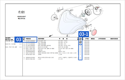부품번호는 차량모델 ‘파트리스트’를 통해 확인하실 수 있습니다.